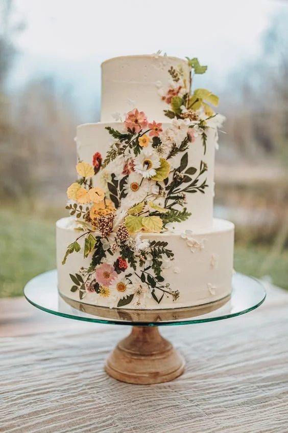 Incorporating greenery and fresh flowers onto the wedding cake can be such a simple, beautiful way to add a romantic aspect to the reception, by effortlessly infusing the cake with a touch of natural elegance.