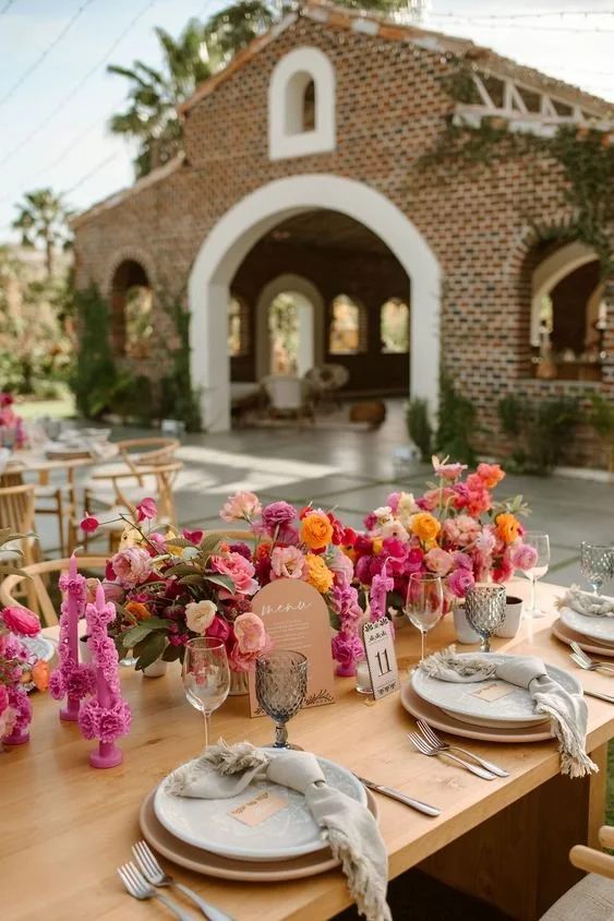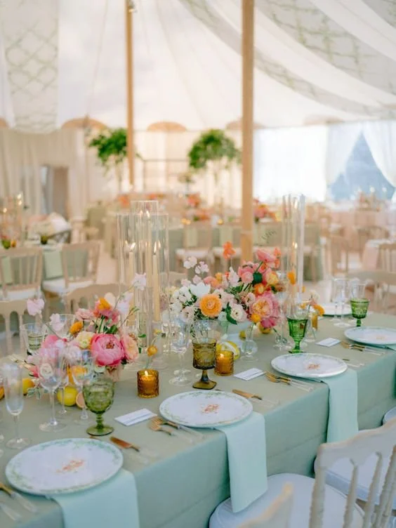 A garden themed wedding lends itself so well to a light, romantic, spring palette! Incorporating lots of pinks, oranges, yellows, etc., whether through florals, decor, or attire, can bring the theme to life!