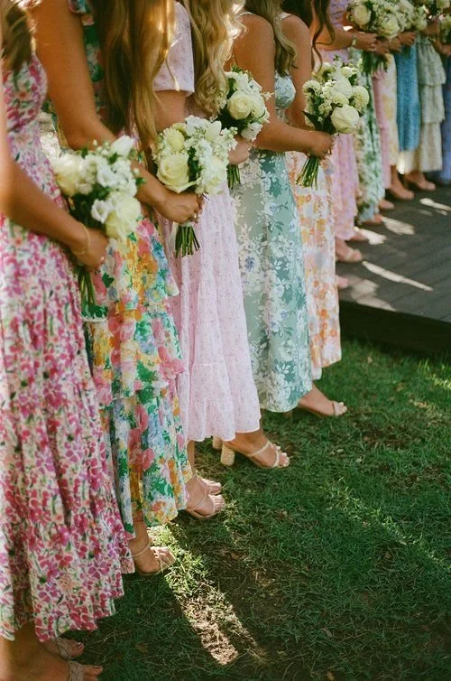 To further embrace the garden theme, floral accessories like boutonnieres, corsages, or hair adornments can be incorporated into the bridal party's overall look.
